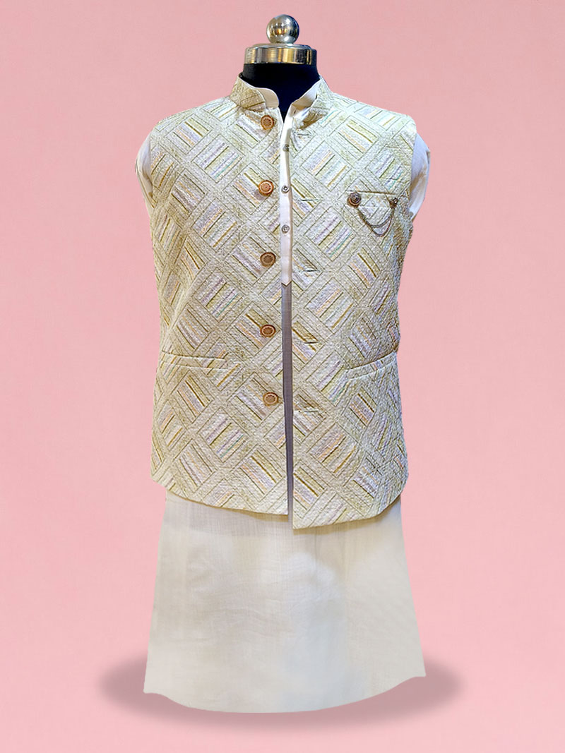 The Product Price is inclusive of: Kurta, Pant Cut Pajama, Waist Coat and Pocket Square.