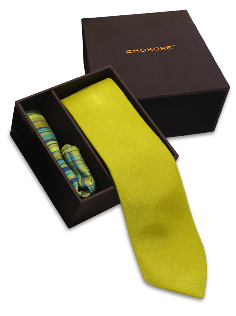 Bring in the complete summery fresh vibes to your wardrobe by adding this elegant Lime Green Necktie and Check Pocket Square to it. Packed in Specially Crafted Box for more Elegance.