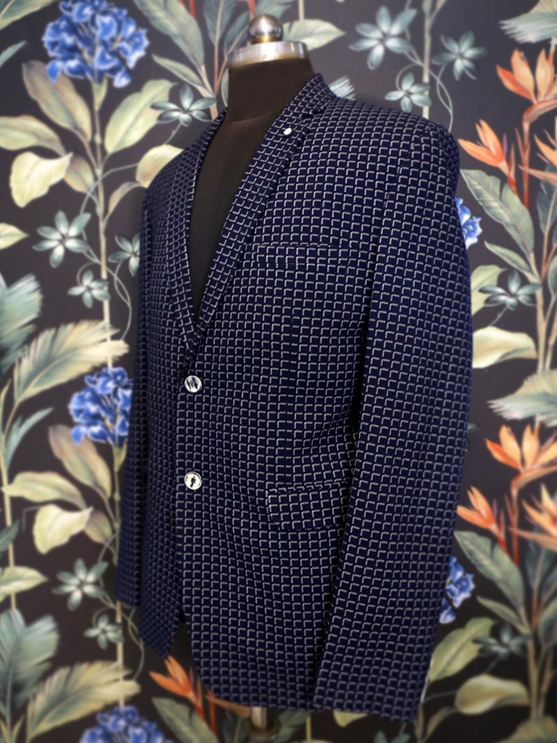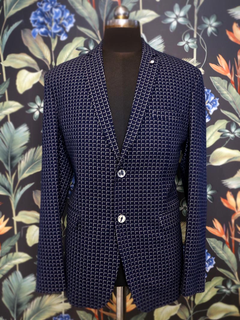Navy Blue and White single-breasted Self design blazer, has a notched lapel, double button closure that give sophistication to your attire on formal meetings and other occasions.