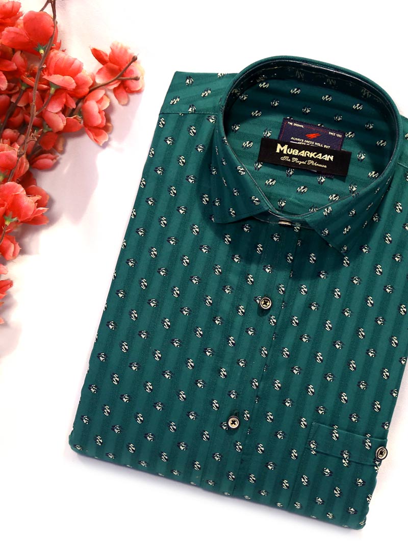 Feel the comfort in this party wear shirt with our peppy print design having Fused collar and cuffs.